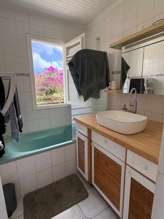 ACS IMMOBILIER vous propose cette charmante villa accessible de plain pied dans une impasse d'un quartier résidentiel, calme et ventilé du ROBERT. La villa, dans un parfait état se compose : d'un salon, d'une cuisine équipée avec cellier, de trois chambres climatisées, d'une salle d'eau, d'une salle de bain, d'un wc indépendant, d'une buanderie, de deux vastes terrasses. Vous profiterez également de la piscine et d'un carbet, l'idéal pour recevoir la famille et les amis et profiter pleinement des beaux jours. Parfaite pour une famille à la recherche de confort et de tranquillité.