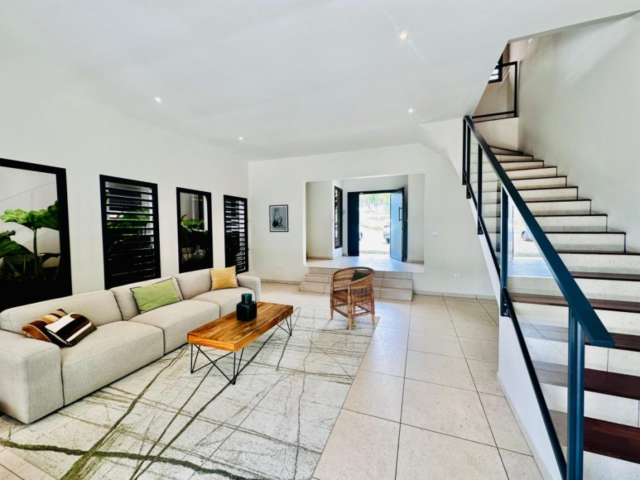 LE VAUCLIN - Découvrez cette villa d'exception, conçue par un architecte de renom; où chaque détail a été pensé pour allier design épuré, volumes lumineux et matériaux nobles. Les grandes fenêtres teintées inondent les espaces de lumière tout en préservant votre intimité. Nichée sur un large terrain plat et entièrement privatisé, la propriété est sécurisée par un portail motorisé, offrant discrétion et sérénité. La cuisine est récente, spacieuse et a été dessinée sur mesure offrant une vue sur la piscine et le grand jardin.