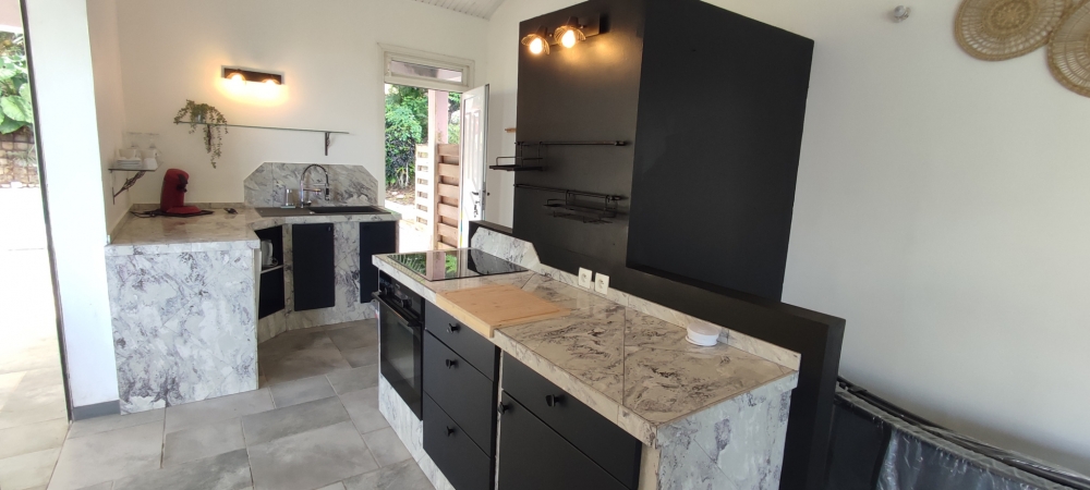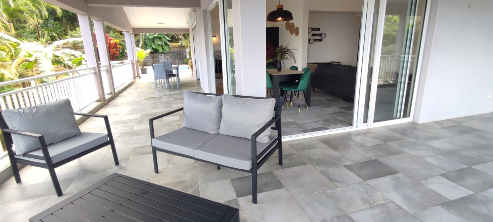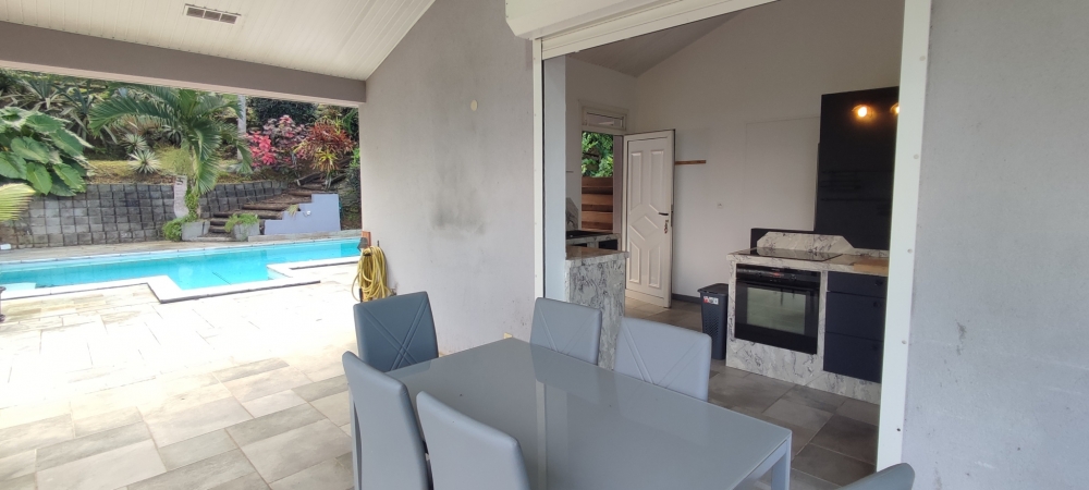 ACS IMMOBILIERS vous propose ce haut de villa T5 indépendant et entiérement meublé avec piscine privée et implanté sur grand terrain entretenu et arboré de plus de 1700 m2 sans vis à vis, situé sur les hauteurs de l'Anse à l'âne, à l'entrée du Morne Cocoyer.