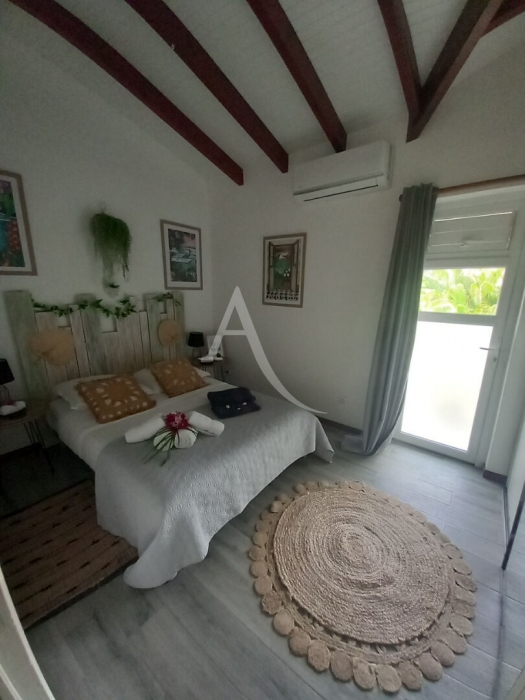 Venez vite découvrir cette jolie villa jumelée de type T4 en duplex , meublée et décorée avec goût avec piscine dédiée à la location saisonnière à l'Anse à l'Ane aux Trois-Ilets comprenant: -au rez-de-chaussée : une salle de bains, un dégagement, un séjour, une cuisine aménagée et équipée, une lingerie , une loggia, un patio ; - à l'étage : un dégagement , trois chambres dont deux avec placard et balcon, une salle de bains et un WC indépendant ; Et la jouissance exclusive d'un jardin privatif de 84 m² + 2 places de parking. Proche des plages, elle vous offre une cadre de vie exceptionnel. Rapport locatif : EXCELLENT! Maryline FOYE (EI) Agent Commercial - Numéro RSAC : - .