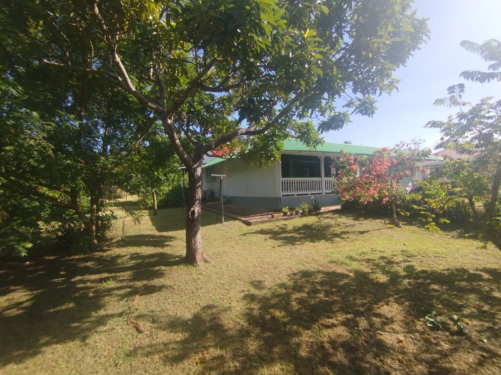 a PETIT BOURG a la campagne mais a 3mn des grands axes routiers et 10 mn de Jarry cette maison de 250m2 utiles de 4 chambres,2sdb,séjour, salon;cuisine, galerie avec volets roulants électriques le tout sur un terrain de 1598m2 clos et arboré avc un carbet. Le plan d'urbanisme permet de construire des annexes (garage,gites,etc...) le prix est de 340000€ les frais d'gence sont compris dans le prix pour visites tel philippe xx-xx-xx-xx-xx
