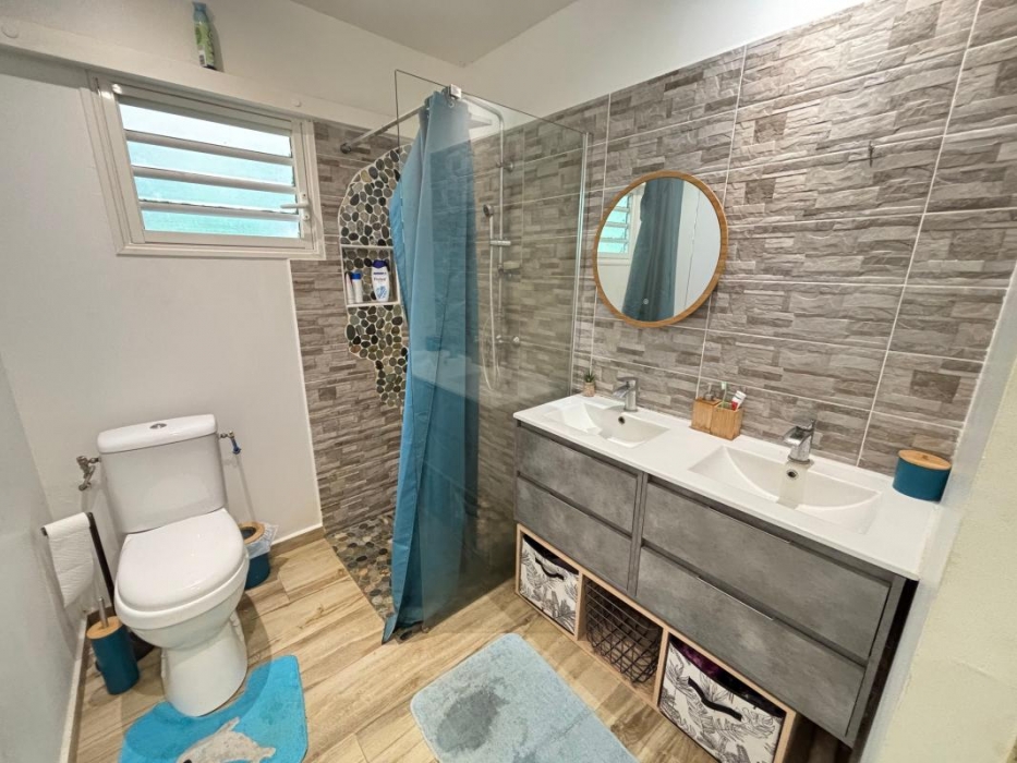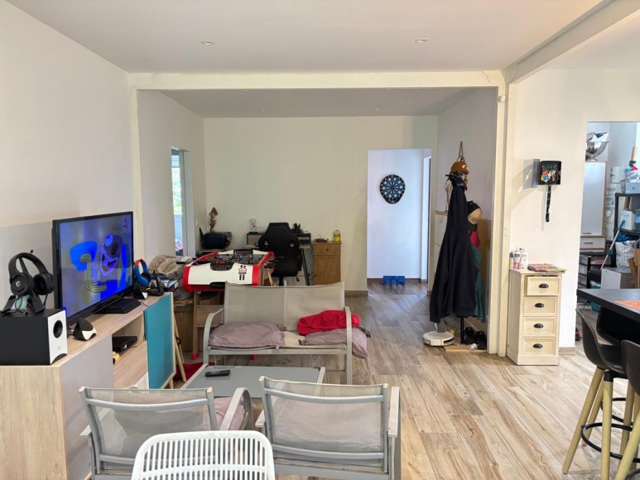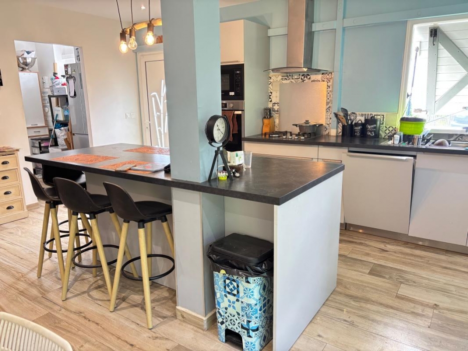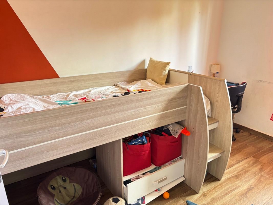 Maison de type F5 comprenant séjour, cuisine, salle d'eau, trois chambres, une chambre avec salle d'eau.