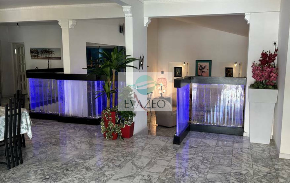 L'appartement principal propose de vastes espaces de vie avec un salon-salle à manger de 100m2 et une cuisine équipée de 18m2. La partie nuit comprend 5 chambres spacieuses et 4 salles de bain. Deux garages fermés avec rideaux électriques et un accès direct à la piscine complètent ce niveau.