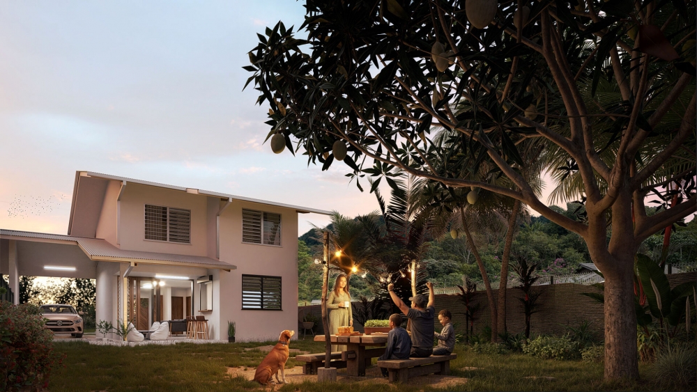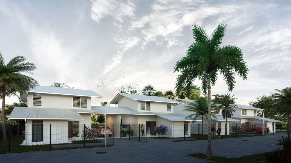 Découvrez La Résidence KENTIA qui comprend : - 4 VILLA de type T5 jumelées par le garage d'une surface habitable 93m² offrant un confort de vie optimal se dessinant comme suit: - Au RDC : un salon, une cuisine, une buanderie, salle d'eau, une chambre - Au R+1: 3 chambres, un dégagement, espace de rangement Sur une parcelle d'une superficie de 400m² - abri voiture - gouttière - terrains clôturés et piscinable
