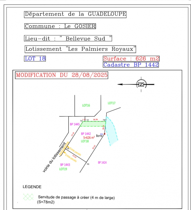 Sur la commune du Gosier, secteur les Salines, nous vous proposons ce terrain plat de 626 m2 (LOT 18) avec vue dégagée sur la foret dans un beau lotissement viabilisé qui sera achevé en février 2026. Il s'agit d'un lotissement de 20 lots, sur lequel seront édifiées des constructions à usage d'habitation individuelle. L'emprise au sol autorisée est de 30% de la surface de la parcelle.