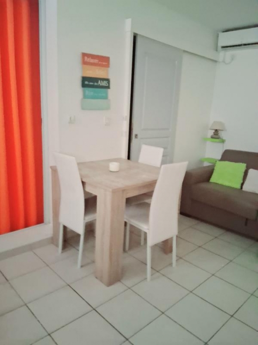 Appartement idéalement situé au Gosier, à proximité des arrêts de bus et du centre-ville, au sein d'une résidence sécurisée.
