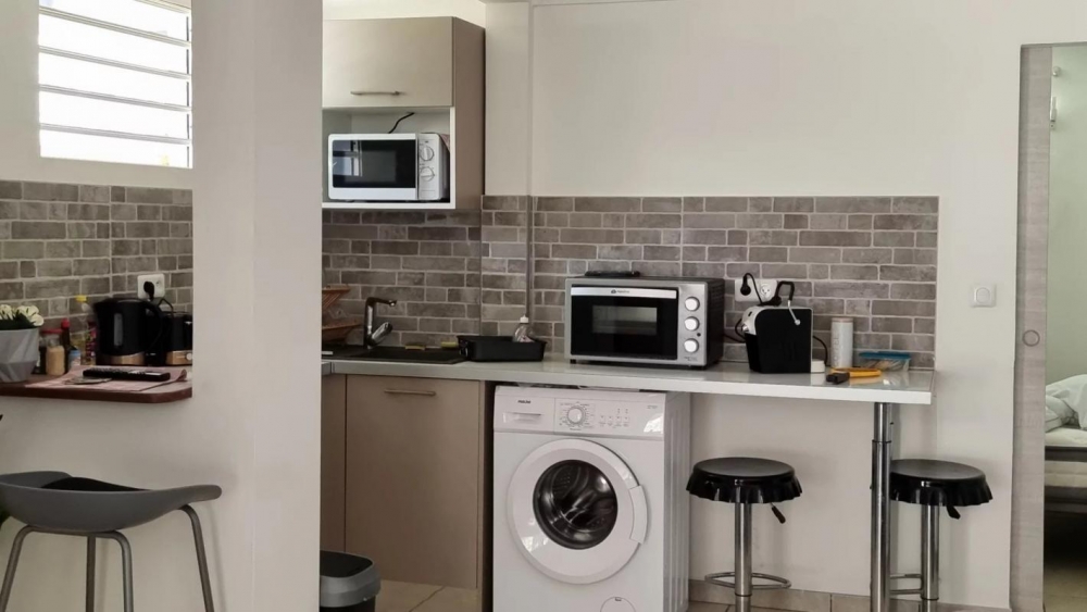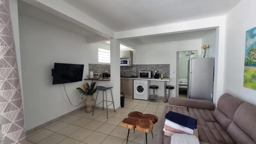 Ce bien est composé : d'une chambre climatisée avec salle d'eau et toilette, d'un salon avec une cuisine entièrement aménagée et équipée et une terrasse ouvrant sur un espace très ZEN et un jardin clôturé pour farnienter