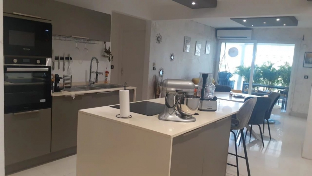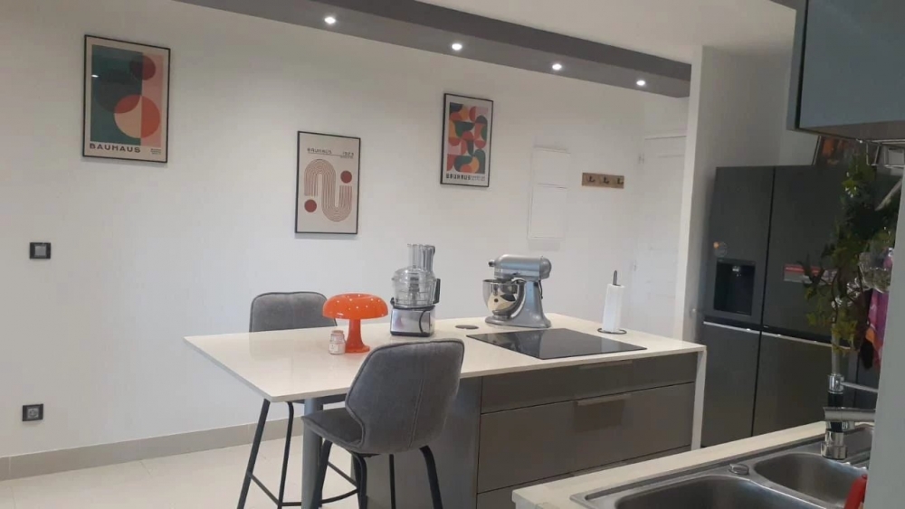 La cuisine, ouverte sur le séjour, est équipée d'appareils électroménagers dernière génération, le tout parfaitement intégré pour un rendu haut de gamme. L'espace de vie, baigné de lumière, donne directement accès à une superbe terrasse de 20m², idéale pour recevoir ou simplement profiter du calme. Abonnement Box SFR offert.