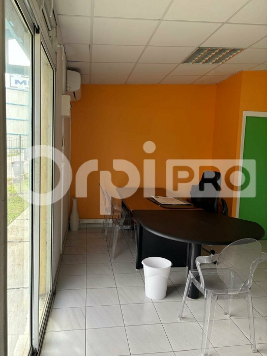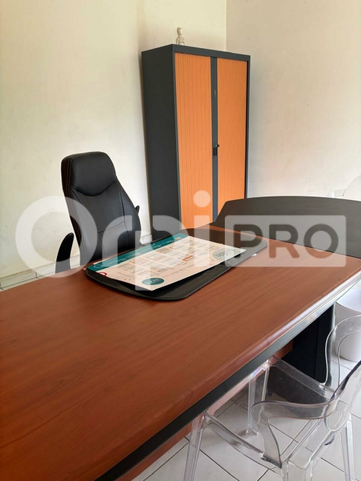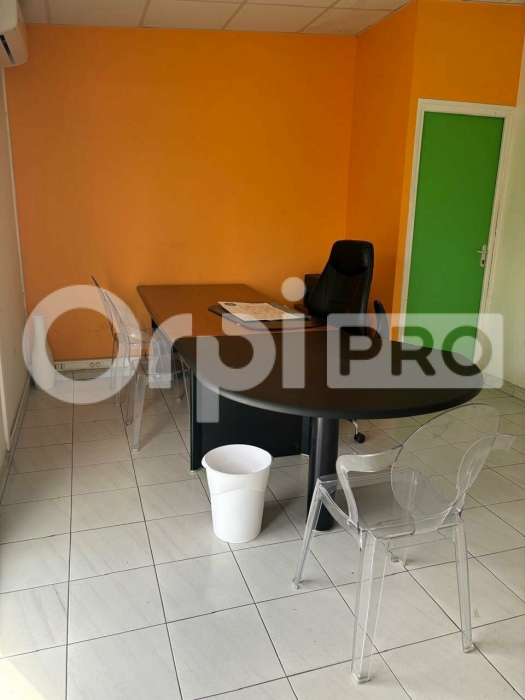 A louer façade rue , un bureau en RDC d environ 15 m2 climatisé aménagé d un bureau avec fauteuil et chaises visiteurs