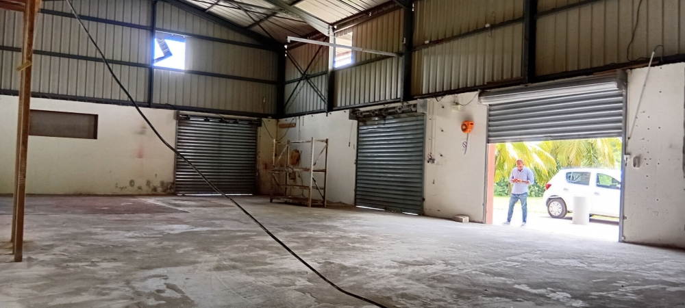 Entrepôt proche de Soudon au Lamentin pour stockage et/ou activité industrielle d'une superficie totale de 325M2 intégrant une surface sous auvent de 60M2. Hauteur sous faitière 7 Mt. Un terrain de 400M2 attenant pouvant recevoir des VL et VU. A visiter sans tarder.