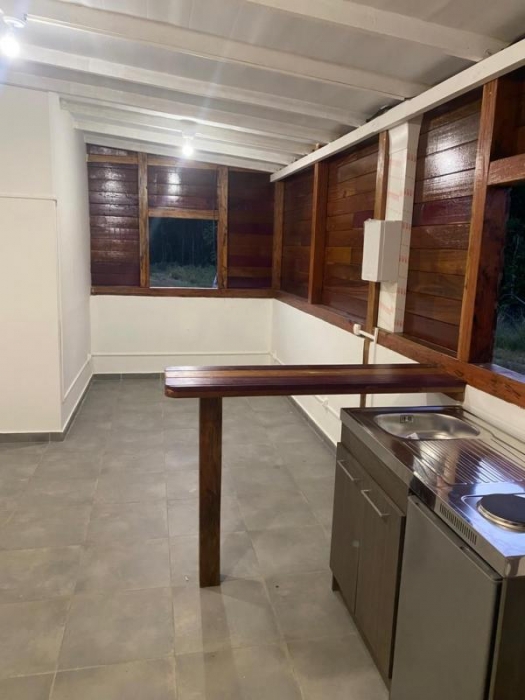 Charmante maison meublée de 81 m² à louer à Kourou, idéalement située sur un grand terrain avec accès à une crique privée. En bon état, elle offre 2 chambres, séjour, terrasse, jardin et un studio indépendant meublé (lit, plaque électrique, frigo, table/chaises) pouvant générer un revenu locatif. Portail électrique, gardien sur place, tout est fourni. . Loyer : 1 600 €/mois. Contactez-nous pour une visite.