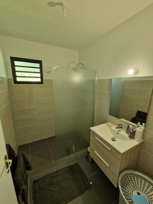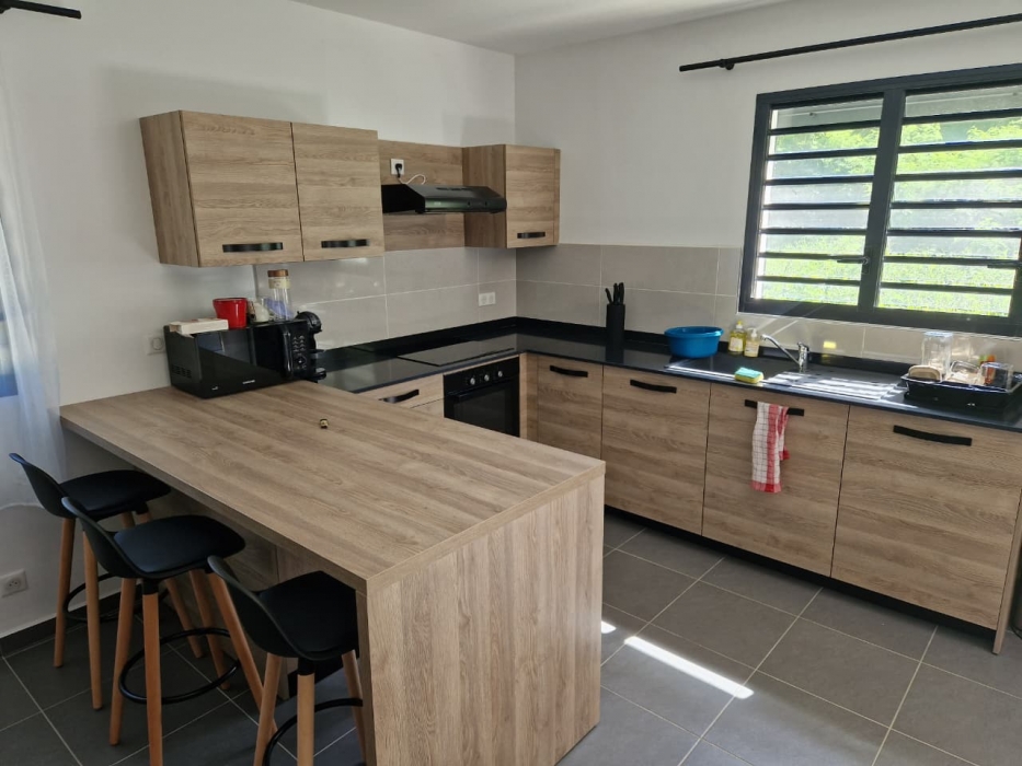 Maison individuelle meublée de plaind-pied de type F3, semi clôturée avec portail manuel, sur Terrain de 900m2 comprenant :