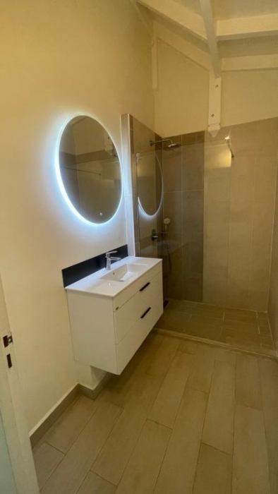 À l'étage, deux chambres climatisées, une salle d'eau et un WC indépendant.
