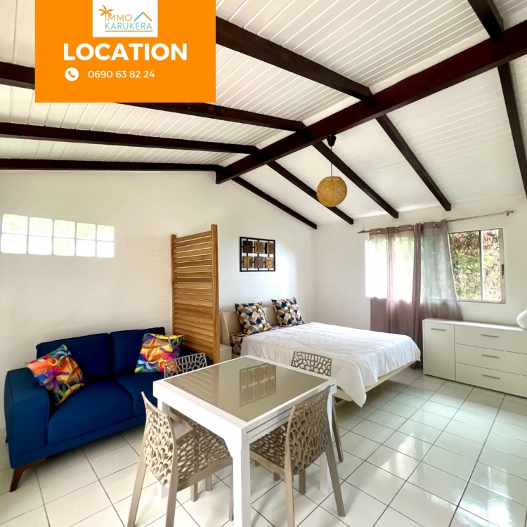 Découvrez ce studio lumineux situé dans un lotissement calme, frais et ventilé, avec accès privé. Il se compose d'une grande cuisine, d'un vaste espace de vie avec une séparation pour la chambre, ainsi que d'une salle d'eau et le WC.
