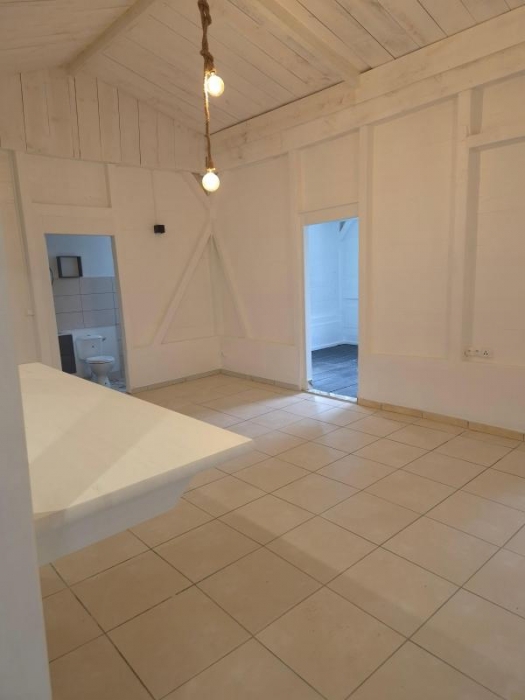 Elle est composée d'un grand séjour avec une cuisine aménagée ouverte, deux chambres climatisées, une salle d'eau + WC et deux places de parking.