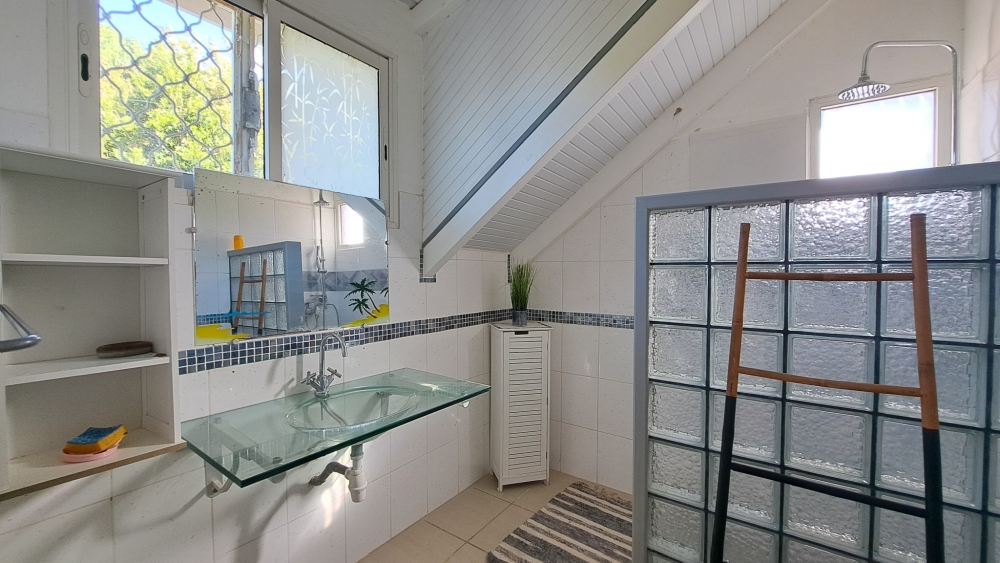 - Á l’étage : une mezzanine conviviale desservant 3 chambres (dont 2 avec balcon privatif bénéficiant d'une superbe vue mer) avec leur propre salle d’eau ainsi qu’un WC indépendant.