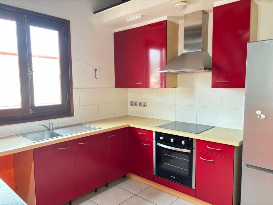 Un séjour lumineux avec une cuisine aménagée et équipée ouverte, dotée d'un grand bar convivial.