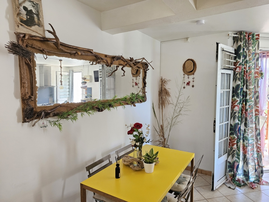 En Exclusivité, ACS Immobiliers vous propose ce charmant T2 meublé situé à 40m de la plage du Diamant, du marché, des bars et restaurants de plage. Doté d'une décoration soignée, ce bien se compose d'une terrasse verdoyante, d'une cuisine aménagée ouverte sur le salon et sur le coin repas, d'une salle d'eau avec wc, d'un espace de rangement, d'une chambre climatisée avec sa terrasse et son dressing, sans oublier le coin bureau judicieusement aménagé. Cet appartement, à l'état impécable, dispose de sa place de stationnement au sein de la résidence privée et sécurisée. Idéal comme pied à terre dans le Sud martiniquais et/ou pour pratiquer la location saisonnière.