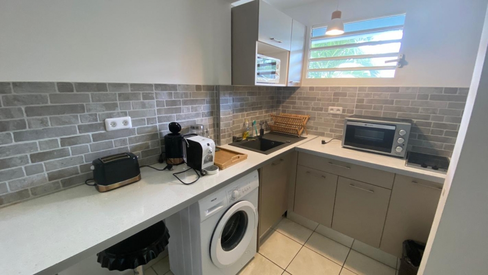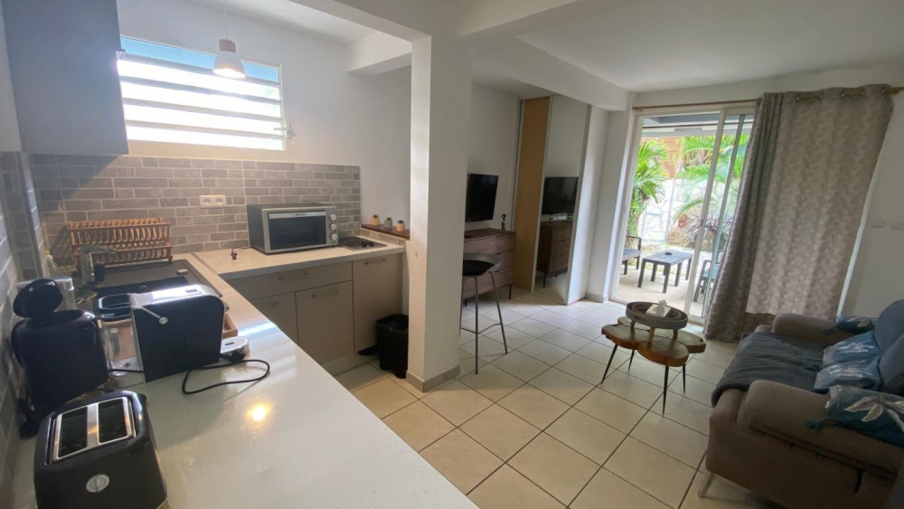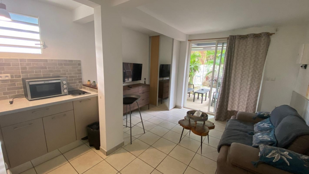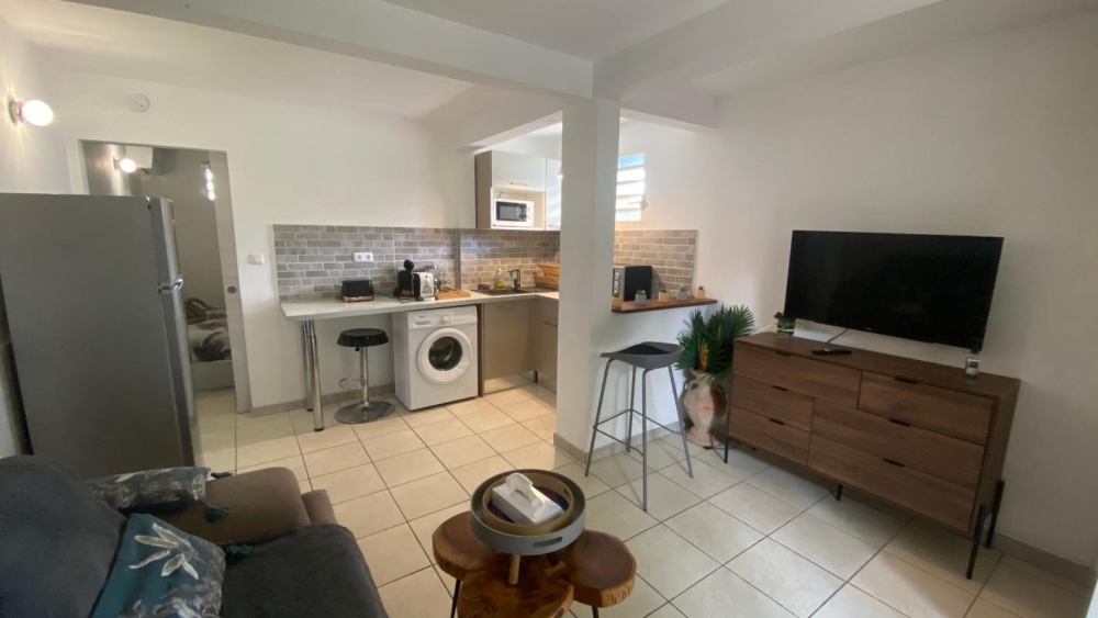 Appartement T2 totalement rénové composée d'une chambre , une salle d'eau , un séjour cuisine aménagée et équipée et un jardin privatif
