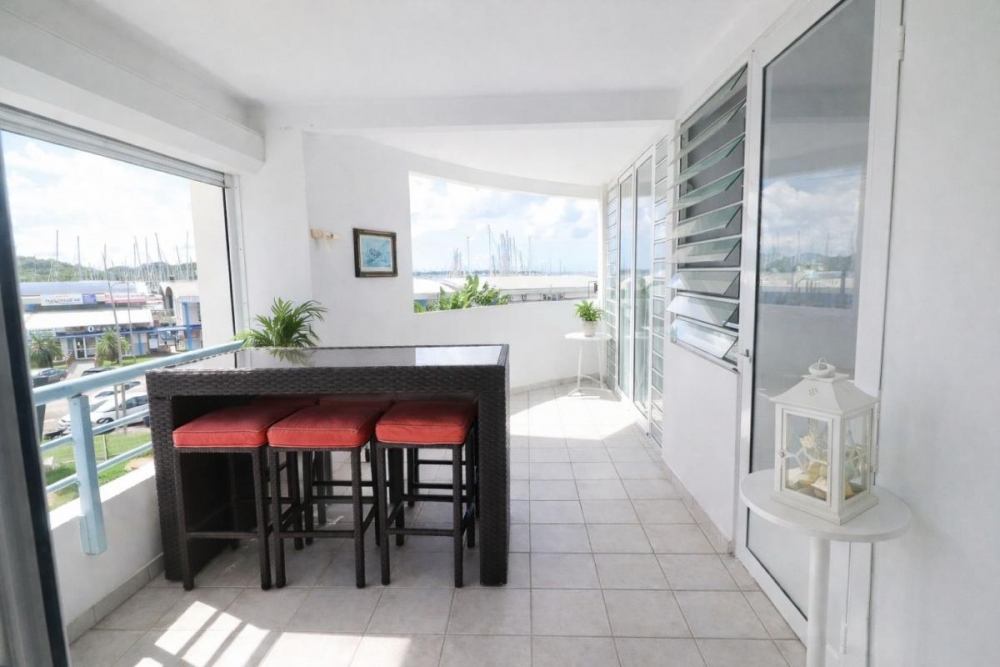 L'appartement se compose de 3 chambres confortables, d'un séjour lumineux et ventilé, idéal pour profiter du climat tropical, ainsi que d'une loggia spacieuse de 14 m² prolongeant l'espace de vie et offrant une superbe vue dégagée sur les bateaux et le port de plaisance.