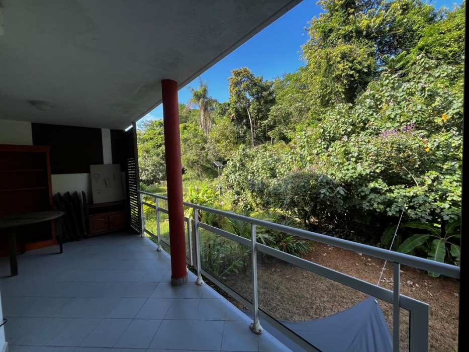 Profitez d'un salon lumineux qui s'ouvre sur une terrasse spacieuse avec vue sur la forêt, d'une cuisine aménagée ainsi que d'une chambre climatisée.