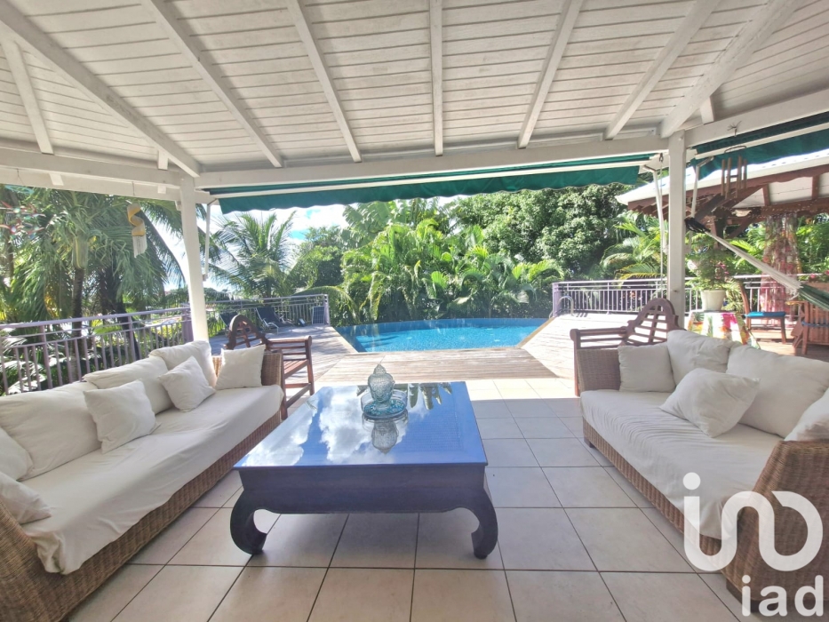 A l'étage, un palier dessert trois suites avec un wc séparés. La suite parentale est au rez-de-chaussée avec sa salle d'eau, son dressign et ses wc. Elle donne sur le jardin arboré par une porte fenêtre. Toujours au rez-de chaussée, un grand salon-salle à manger qui par un accès par des baies vitrées à galandage donne sur un grand deck, la terrasse et la piscine à débordement et également un wc invités. Cuisine séparée tout équipée qui donne également sur la partie deck et une pièce buanderie. Garage fermé attenant pouvant contenir une voiture et également de l'autre côté de la maison un carport. Grand espace pour se garer également devant la maison. Tout le terrain est cloturé. La maison est anticyclonique et antisismique. La piscine a été construite avec des matériaux de grande qualité. Le parc est immence 2515m2 et encore exploitable pour une partie, car un chemin goudronné descend pour un accès plus facile. Arbres, pelouse, fleurs ... vous êtes au centre de la Guadeloupe tout en étant au calme absolu, au bout d'une impasse. En 2025, remise à neuf de la toiture, peinture, carrelages et joints de la piscine et vidange de la fosse septique qui est aux normes !