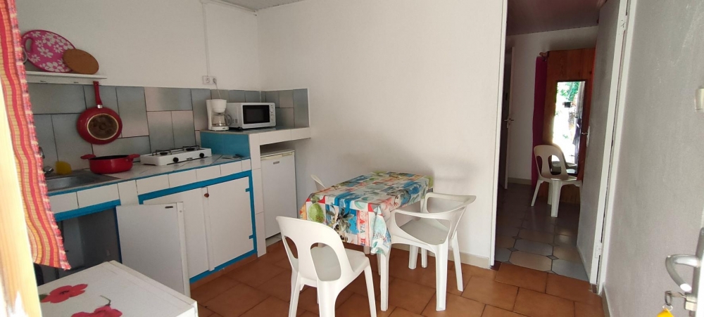 - Une maison d'habitation T4 composée d'une cuisine ouverte sur séjour, 2 chambres, une salle d'eau ,se trouve à l'entrée du terrain aménagé et arboré de 2807m2.Terrasse couverte et stationnement couvert.