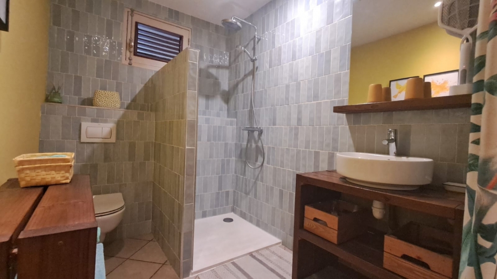 En rez-de-chaussée, un bel appartement T2 d'une surface de 40 m2 indépendant, vendu meublé et équipé, parfait pour un usage locatif saisonnier : un séjour avec cuisine fonctionnelle, une chambre confortable, une salle d’eau moderne, une terrasse ombragée, propice à la douceur de vivre tropicale.