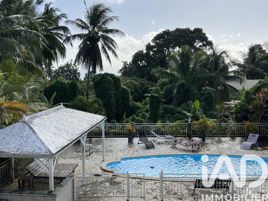 La maison possède aussi un grand garage, une buanderie et une salle d'eau d'appoint. Enfin une grande terrasse en L permet de recevoir ses amis ou la famille en toute tranquillité avant d'aller profiter d'un bon bain à la piscine et de se détendre sous le carbet. La maison se situe sur un terrain de 1869m2. Cette maison peut aussi devenir un bel investissement pour faire de la location saisonnière.