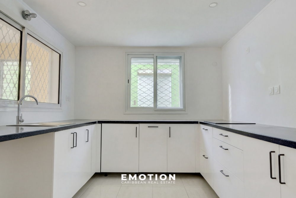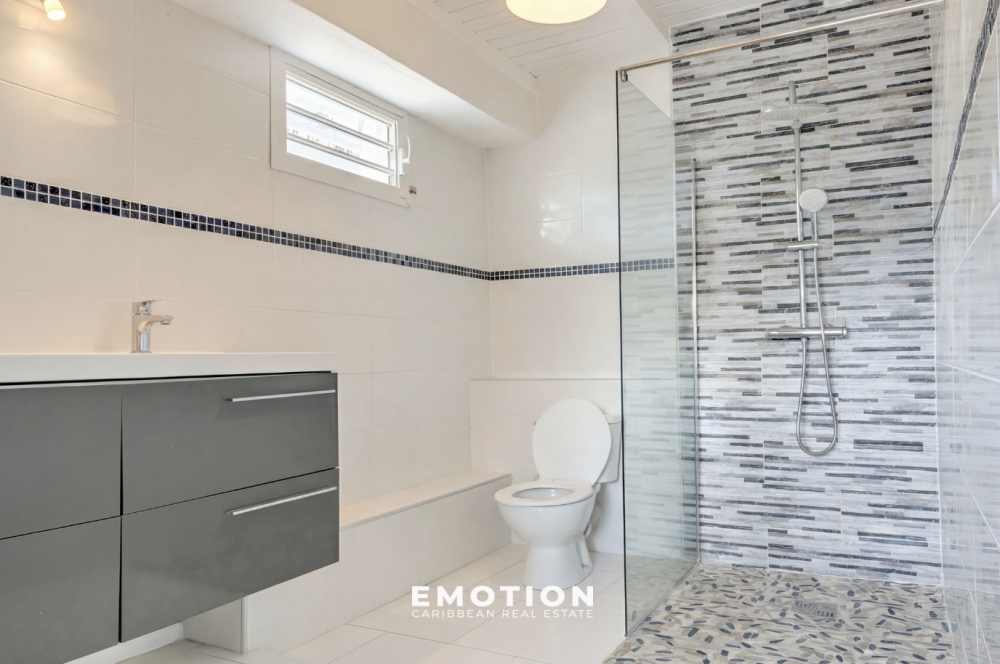 Le cabinet EMOTION Real Estate Guadeloupe vous propose à la vente une maison mitoyenne de 136 m2 entièrement rénovée, offrant de beaux volumes et un confort moderne. Située dans un secteur calme et recherché, à proximité des grands axes et de la ville de Capesterre-Belle-Eau, elle séduit dès l’entrée qui se fait directement par une grande cuisine neuve et entièrement équipée de 28 m2, idéale pour partager de chaleureux moments en famille ou entre amis. Dans la continuité, vous découvrirez un vaste séjour lumineux de 34 m2. L’espace nuit se compose de trois belles chambres dont une suite parentale de 18 m2 avec sa salle d’eau privative de 5 m2 et un accès direct à une terrasse intimiste de 19 m2, ainsi qu’une chambre spacieuse de 19 m2 et une troisième de 12 m2. Deux autres salles d’eau, l’une à l’étage et l’autre au rez-de-chaussée, complètent ce bien pour plus de confort et de praticité. Vous disposerez également d’un garage de 29 m2 (non fermé). Entièrement repensée et modernisée, la maison bénéficie d’une toiture neuve, d’une plomberie et d’une électricité refaites intégralement, de salles d’eau contemporaines, de peintures fraîches, de climatisations récentes et de fenêtres en aluminium performantes.
