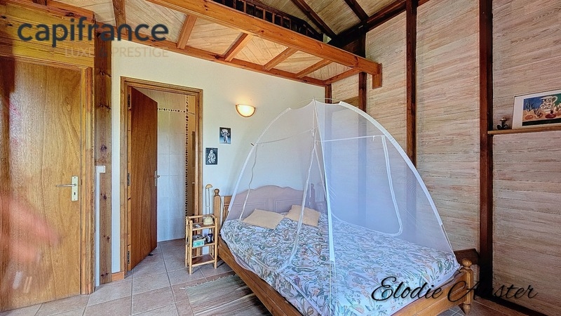 La villa est construite en bois et béton, permettant d'admirer notamment une magnifique charpente et du bois de qualité, soigneusement travaillé pour conférer à cette demeure un charme unique.