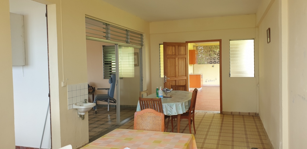 Quartier Abandonné Est, avec une très belle vue mer et montagne, belle propriété très spacieuse, à moderniser, sur une emprise foncière confortable de 1377 m2, comprenant deux logements distincts : 1er étage : un appartement de type F6 (5 chambres), offrant de vastes espaces de vie. 2ème étage : un appartement de type F3 (2 chambres), générant un revenu locatif mensuel de 600 €. Sous-sol spacieux et aménageable, très beau jardin. Fort potentiel pour projet familial ou investissement locatif.