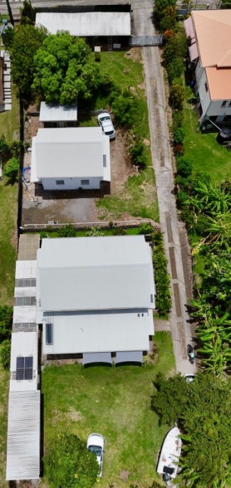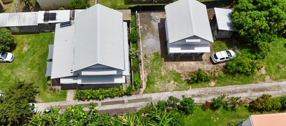 Deux maisons indépendantes en bois rouge + local commercial en bord de route