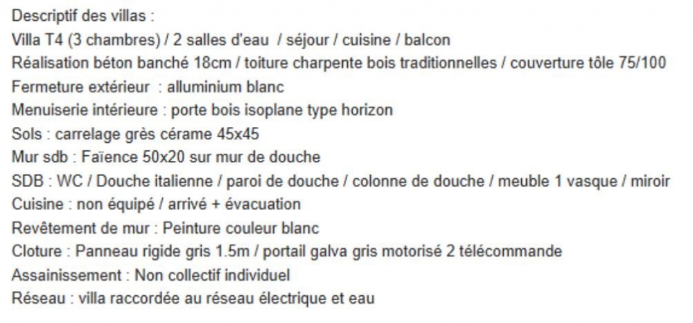 5 villas T4 (env. 88 m² + 24 m² extérieurs) – 290 500 € HAI