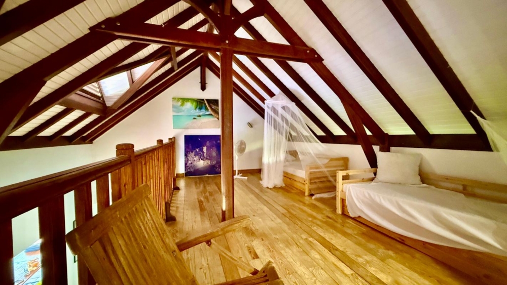 L'intérieur se compose d'un grand séjour lumineux, d'une cuisine entièrement équipée et d'une grande mezzanine apportant volume et cachet.
