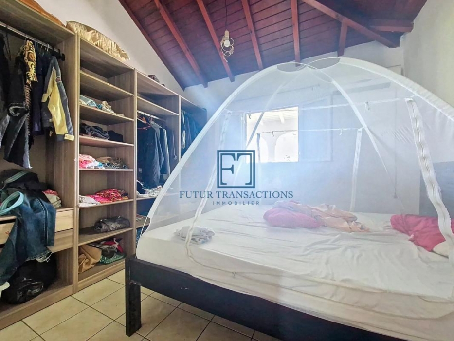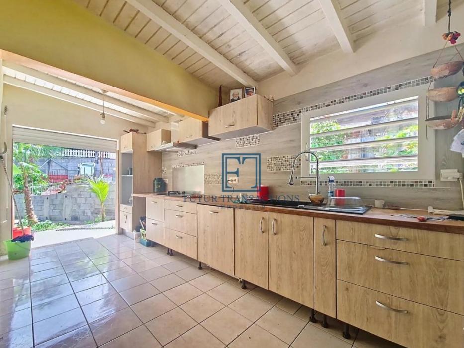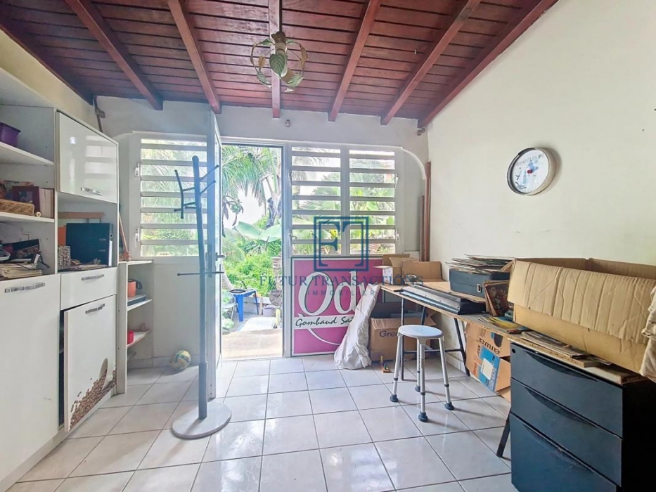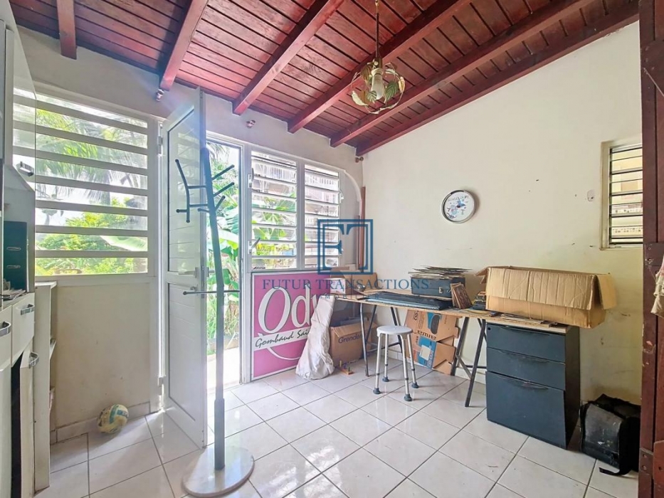À l'extérieur, vous profiterez d'un agréable terrain de 263 m² ainsi que d'un jardin arboré agrémenté de divers arbres fruitiers, offrant un cadre verdoyant et paisible avec une vue imprenable sur les collines de Basse-Terre.