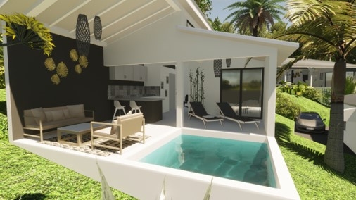 ACS IMMOBILIERS vous propose en exclusivité ce programme neuf composé d’une villa vue mer et de deux lodges sur un terrain de 1212m2 sur la commune des Anses d’Arlet.