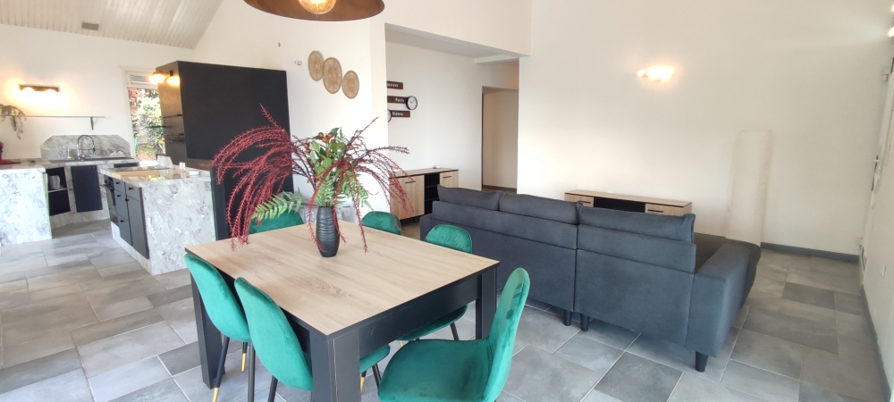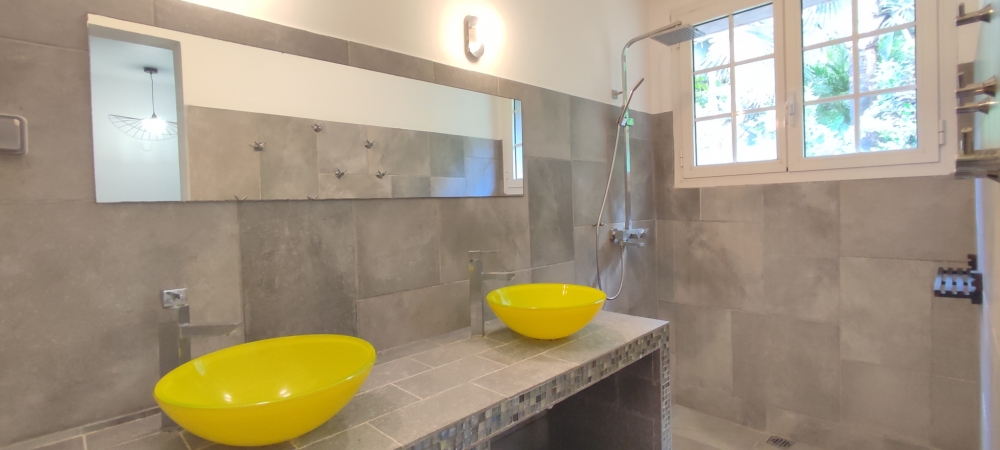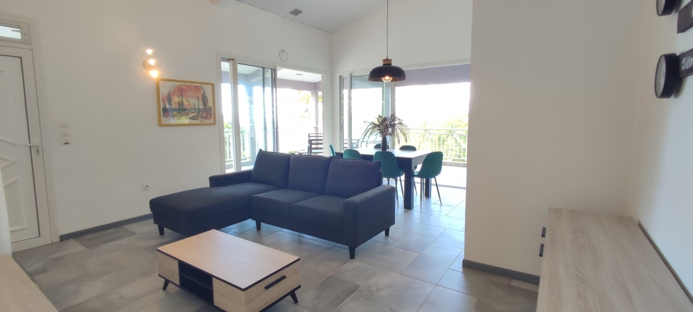 ACS IMMOBILIERS vous propose ce haut de villa T5 indépendant et entiérement meublé avec piscine privée et implanté sur grand terrain entretenu et arboré de plus de 1700 m2 sans vis à vis, situé sur les hauteurs de l'Anse à l'âne, à l'entrée du Morne Cocoyer.