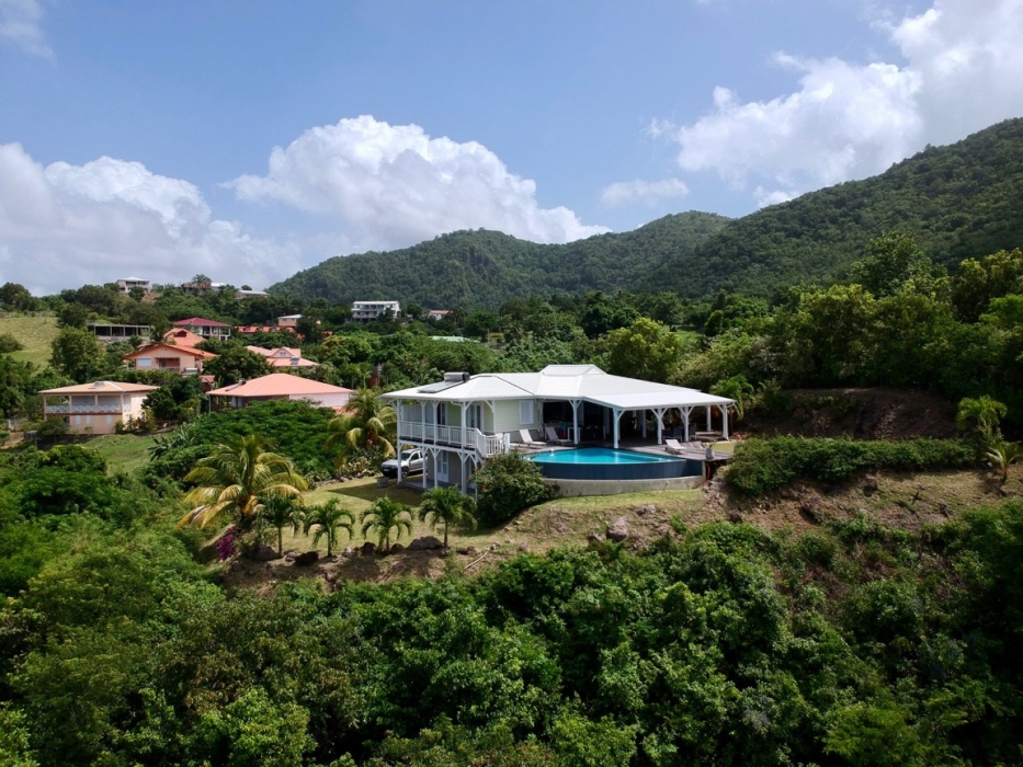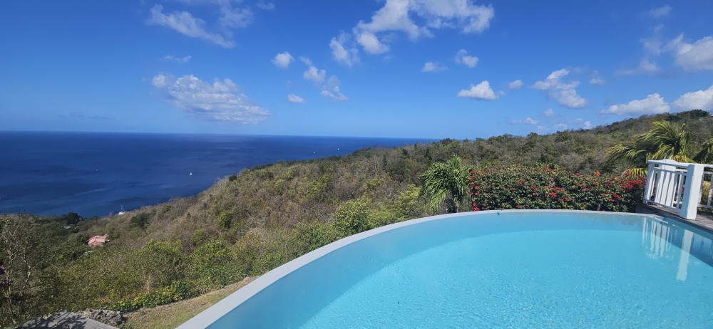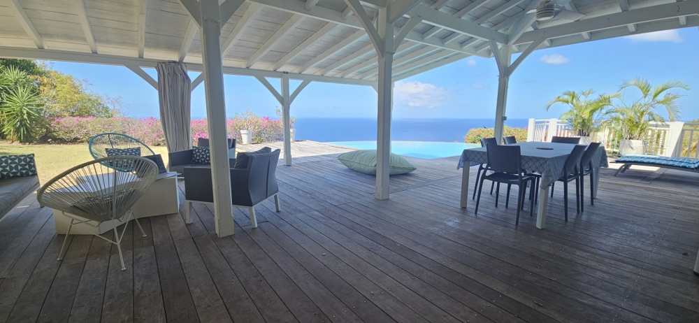 Rare ! ACS Immobiliers vous propose une belle propriété avec vue mer panoramique et intimité totale, située dans les hauteurs des Anses-d’Arlet. Cette jolie villa F5 avec piscine, grandes terrasses et garage, nichée sur un terrain de 3250 m2 constructible, vous séduira par son calme absolu et sa vue dominante, un véritable havre de paix. Construite en bois et béton, la villa offre à l’étage :un vaste séjour doté d'un toit cathédrale, une cuisine lumineuse ouverte sur la terrasse, une spacieuse suite climatisée avec salle de bain attenante, un WC indépendant, une très grande terrasse couverte de 76 m2 ainsi qu'une piscine à débordement au sel avec son deck. En rez-de-jardin : un bureau climatisé, deux chambres climatisées, une salle d’eau avec WC, une buanderie ouverte, une terrasse couverte et un garage. Le vaste terrain constructible offre également la possibilité d’agrandir la propriété avec une seconde villa ou des bungalows. La maison est en parfait état, avec beaucoup de potentiel et une situation géographique exceptionnelle.