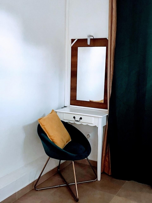 À l'arrière, une dépendance attend son futur locataire (ou un ado en quête d'indépendance !). Elle offre : Une petite terrasse, Une salle de bain avec WC, Une chambre cosy, Une cuisine extérieure, donnant sur une petite forêt de bananiers, histoire de s'évader un peu.