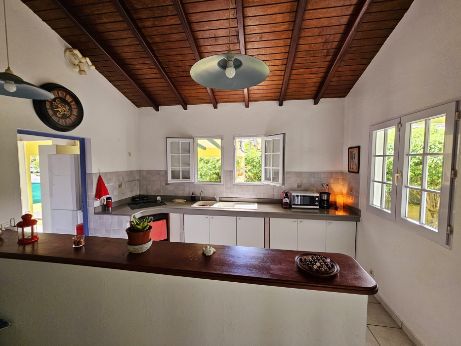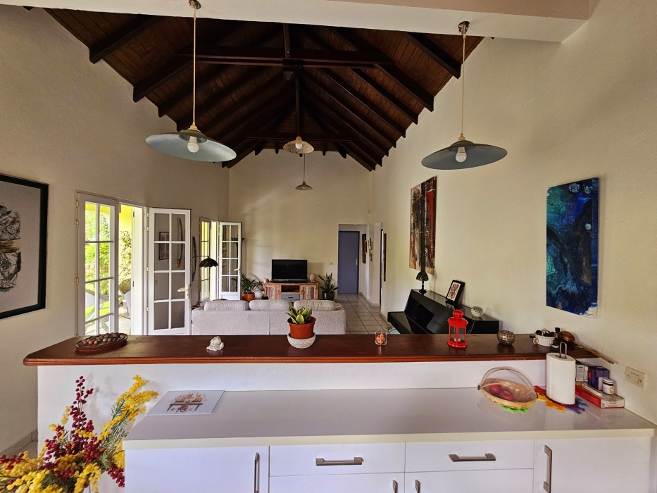 Prix en baisse sur cette villa F4 de cachet traditionnelle dans son petit cocon de verdure, idéalement située dans le quartier très recherché de La Grippière à Petit Bourg. La villa se compose de : *3 chambres climatisées, *2 salles d'eau, * un salon avec un beau volume sous charpente traditionnelle, *une cuisine ouverte de type américaine avec son cellier, * une belle terrasse donnant sur un beau jardin fleuri et arboré. La propriété de 992m2 est entièrement cloturée et sécurisée par un portail électrique. Taxe foncière 2023 : 1954€. Si vous êtes à la recherche d'un cadre de vie verdoyant et proche de toutes commodités, notre équipe est à votre disposition pour toute visite.