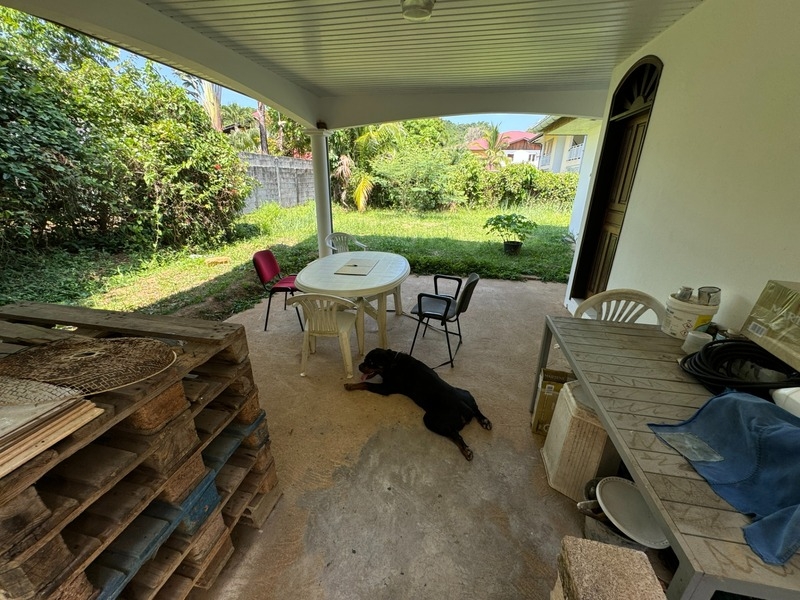 J'ai le plaisir de vous présenter cette grande maison de 150 m2 habitable, sur une parcelle de 1406 m2 à Montjoly, idéalement située en face de Guyane 1ère, et située juste avant la résidence Buisson ardents.