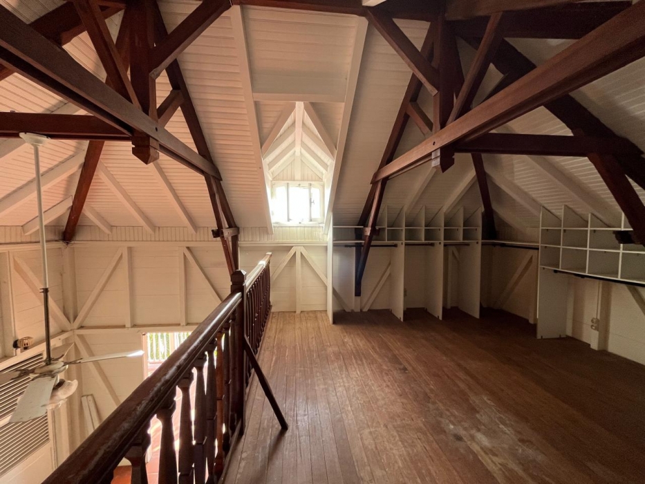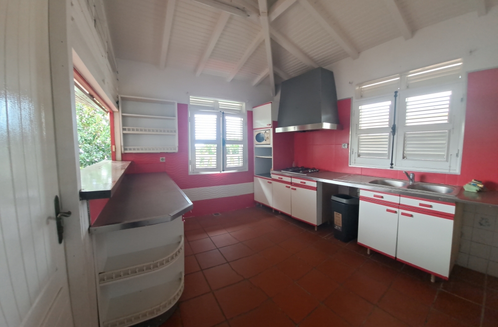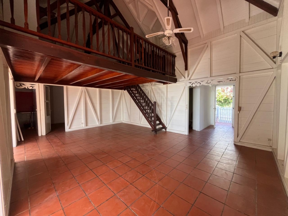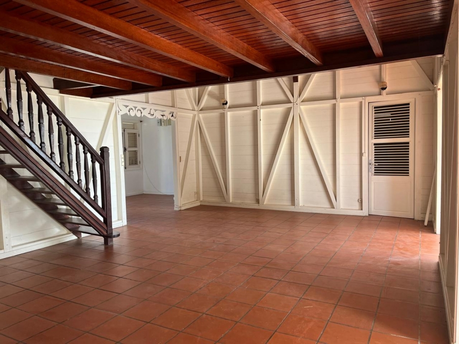 Édifiée avec des matériaux nobles et durables, la propriété se distingue par une structure alliant le savoir-faire guyanais et guadeloupéen. La charpente, entièrement réalisée en bois d’Angélique, essence réputée pour sa solidité et sa longévité, témoigne du soin apporté à sa conception. L’escalier menant à la mezzanine, entièrement façonné en amarante, ainsi que la mezzanine elle-même, réalisée en Saint-Martin rouge, confèrent à l’ensemble un caractère authentique et assure la pérennité du bâti.