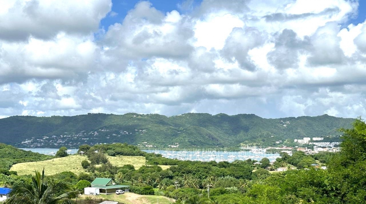 Nichée sur les hauteurs du Sud de l’ile, cette propriété vous offre un écrin de verdure de 10 000m² et une vue à couper le souffle sur la mer des Caraïbes, la Marina du Marin et la campagne environnante.