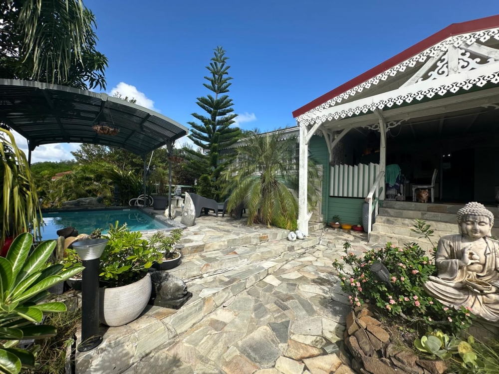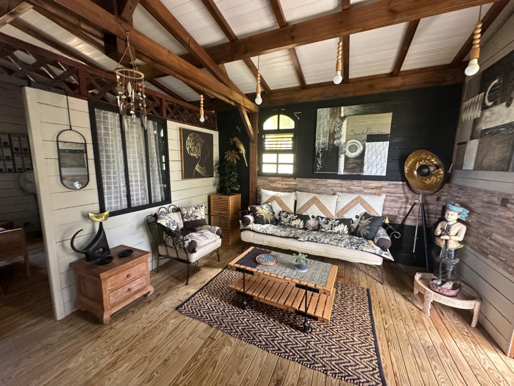 Laissez-vous séduire par la villa principale où se mêlent harmonieusement l'âme créole et l'élégance balinaise, un charme indéniable et chaleureux. Chaque pièce est un hommage à l'art de vivre, où l'intérieur se fond harmonieusement avec l'extérieur. Le jardin tropical luxuriant agrémenté d'une piscine invite à la détente.