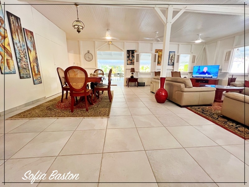 Sous le soleil des tropiques, cette superbe villa créole incarne le charme et l'élégance de l'architecture antillaise. Édifiée sur un terrain plat, clos et paysager de 1 409 m², elle déploie plus de 220 m² habitables complétés par un très grand espace extérieur comprenant une superbe terrasse couverte de 231 m², un porche d'entrée de 35 m² et une piscine de 7 × 3 m, parfaits pour savourer la douceur du climat caribéen et recevoir famille et amis.