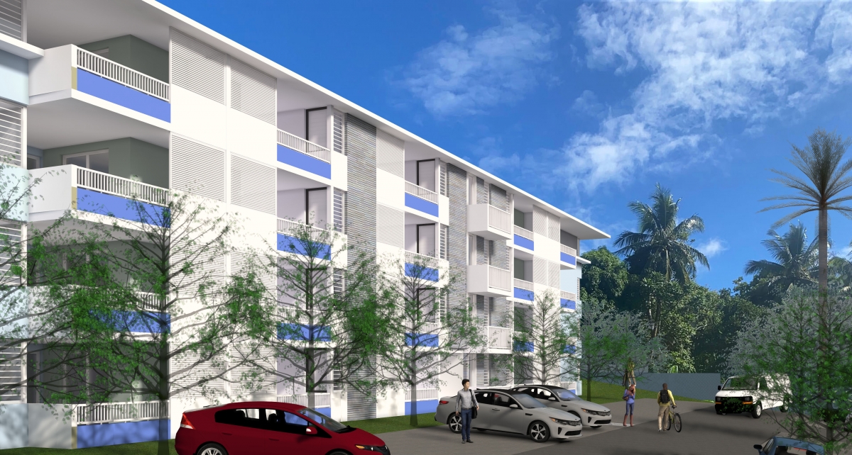 la Résidence Palme Bleue sera composée d'un bâtiment de 36 appartements du T1 au T3 répartis sur 4 niveaux