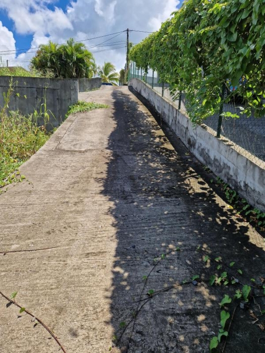 Il est entièrement clôturé et aménagé en quatre niveaux plats (bétonné et gravillonné) avec portail coulissant accès par servitude privé.